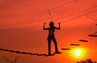 árvores, a menos de 1m do chão. A intenção é se equilibrar sem cair. Esta